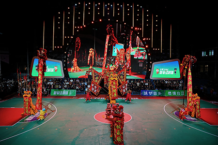 开幕式在气势恢宏的醒狮表演中拉开帷幕,锣鼓激昂,雄狮威武,南海醒狮以其独具的吉祥寓意与昂扬精神,瞬间点燃了全场热情。苗族迎宾舞、桐鼓花帕等精彩纷呈的乡村文艺节目,将苗族非遗文化与现代表演形式巧妙结合,呈现了一场融乡土气息与民族风情于一体的乡村篮球文体盛宴。揭幕战上,各队球员奋力拼搏,既有泥土般朴实坚韧的防守,也有种子破土般充满爆发力的进攻,展现出新时代农民群众昂扬向上的精神风貌。